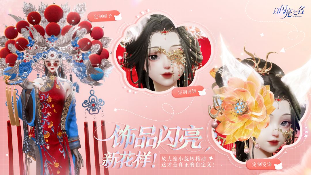 发饰、面饰、帽子佩戴效果不够满意,发饰佩载位置调整还不够自由?面饰大小不够满意?饰品定制功能帮你重塑搭配效果!合伙人可以自由定制发饰、帽子以及面饰在佩戴时的位置、大小和旋转角度,设计独一无二的饰品搭配造型。各种服装饰品的自由调整,激发搭配的无限灵感。