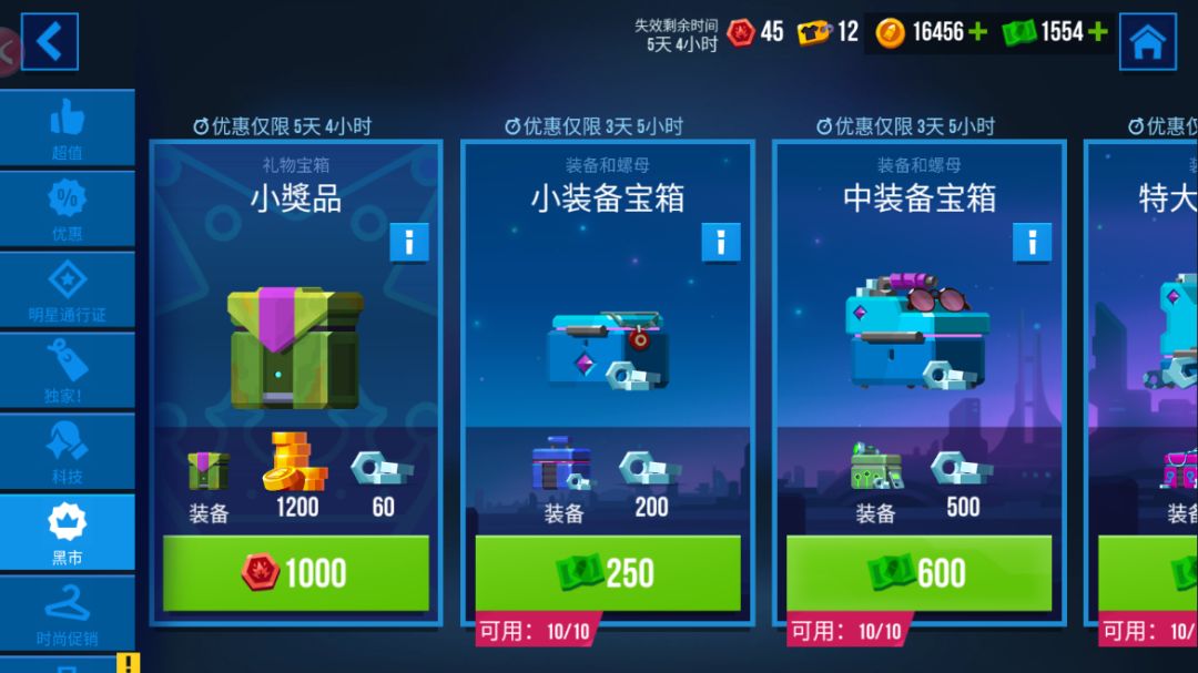 除此以外,黑室内也是有可以使用钞票直接购买的装备宝箱,如果需要提升装备属性,可以偶尔点开黑市查看定期更新的装备道具,根据自身需求开启宝箱获取。