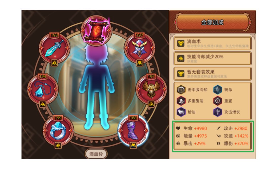 ○ 技能词条:如满级词条增加百分之50攻击/生命
