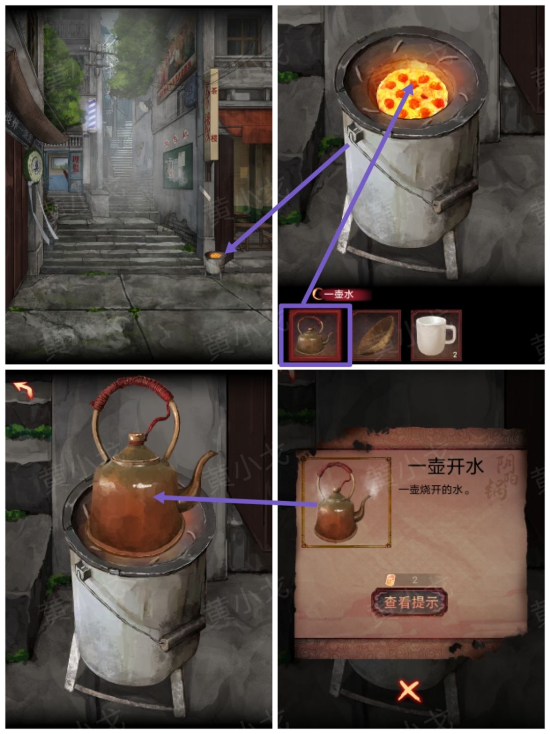 7.点击门口的蜂窝煤炉,放上【一壶水】烧开,获得【一壶开水】