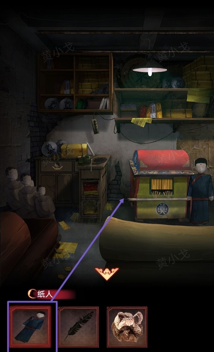 25.点击红色棺材,用【撬棍】撬开,获得【纸人】
