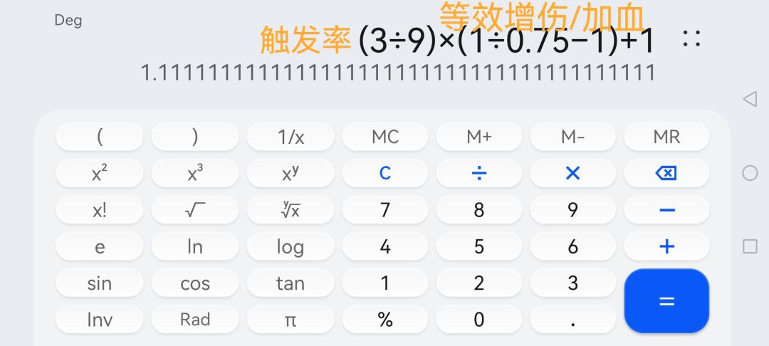 上图是计算过程,天赋覆盖率(0.33)× 等效额外加血(0.33)+ 原血量(1)= 1.11