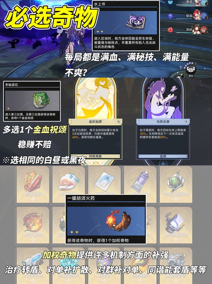 遇到可以无脑选,能够提供一些不错增益、生存的奇物: