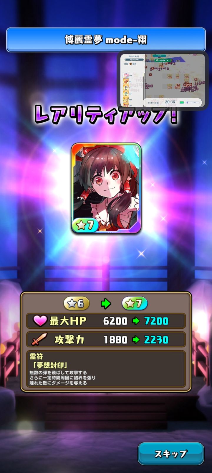 登录近半年,也是把一只灵梦抽满7星了,可喜可贺!还有另一只芙兰也5星了!好鵺!