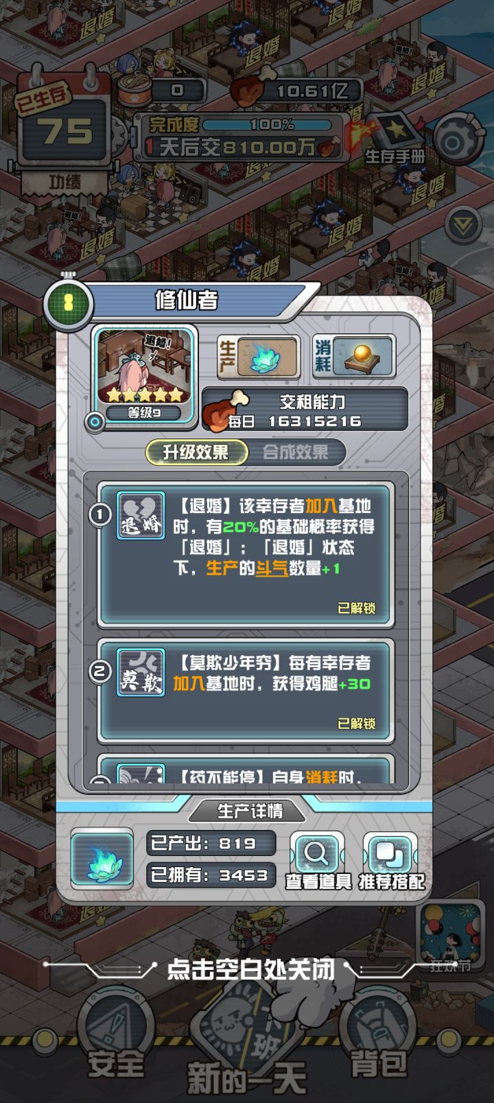 修仙加乐队,一直选修仙没有就选乐队,开局合个五星变成斗帝就行,剩下的不用合直接放上去,修仙卡没有空位就合成,科技全部加生产次数次加租,合成五星后存四个猫粮换压力每个一星加百分之二十房租的卡。