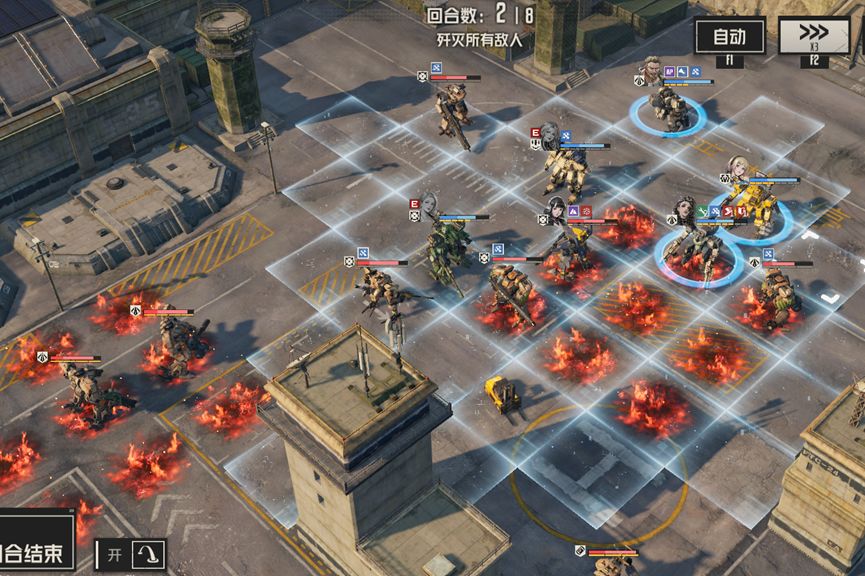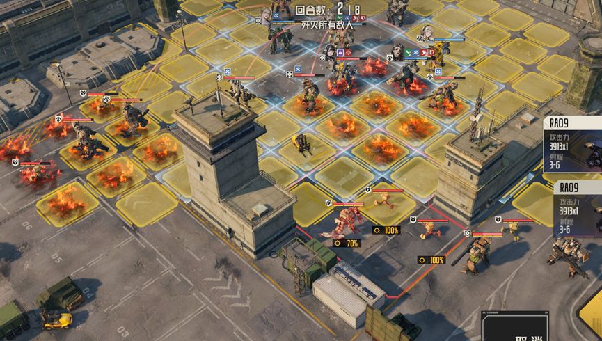 威廉和芙烈达合力把黛娜打残,运气好甚至可以直接消灭,注意这里芙烈达的站位,不能进入下面轻狙射程