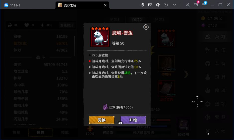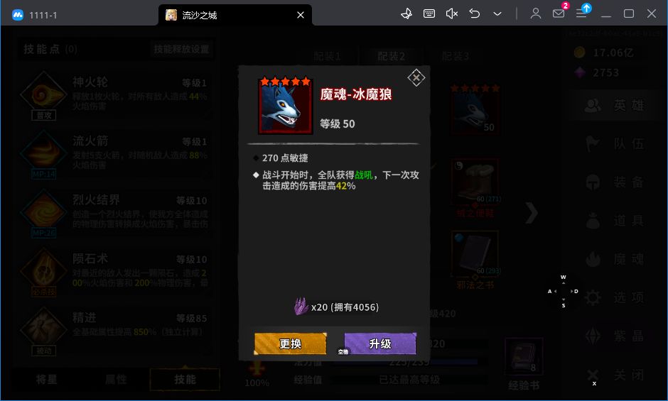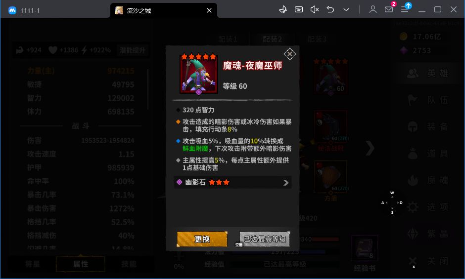 魂珠选择:怨魂珠(缺吸血选这个),炽热球(缺暴击选这个),幽影石(前两个都不缺用这个)