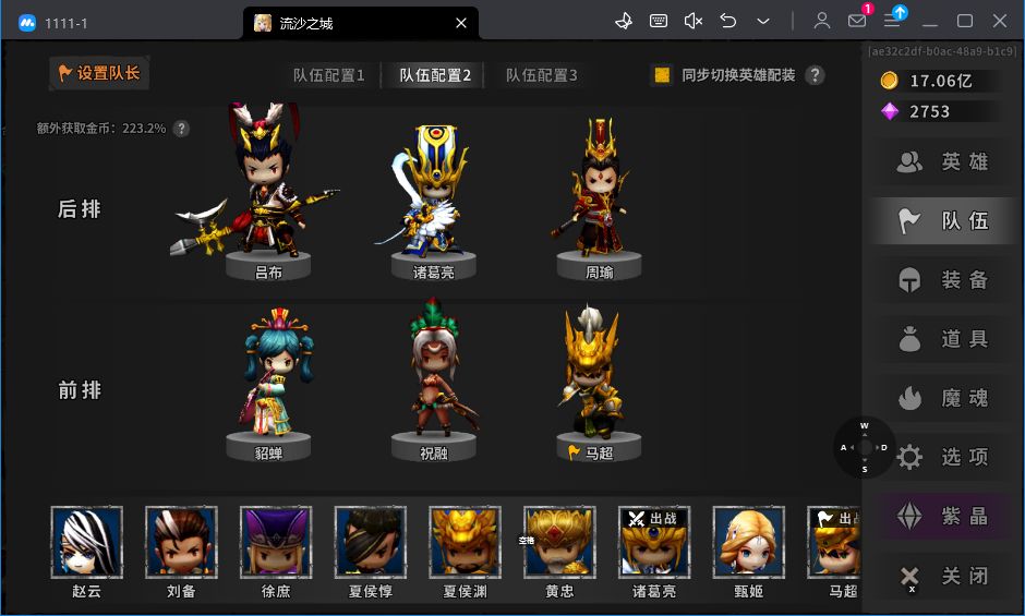 前言:此阵容将黄忠队长换成诸葛拉条,相比用黄忠队长的好处是吕布可以出手更多次,更适合新手低配爬塔。