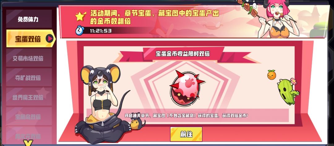 如图所示:每周一活动:所有宝蛋金币双倍(但不包含宝藏岛的宝蛋)