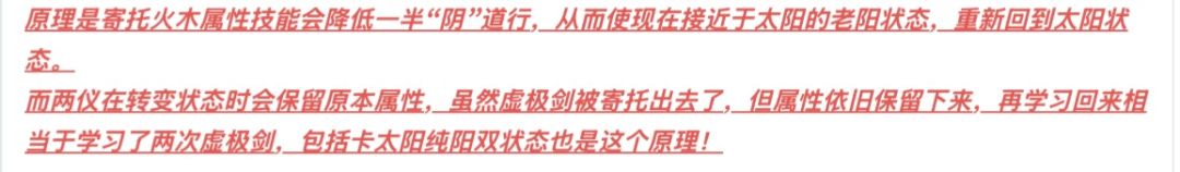 虚极剑寄托完毕后状态重新回到太阳状态就是卡成功了,依旧为老阳状态就是上一步“阴”属性增加太多了,需要保证现在的老阳状态接近于太阳状态。