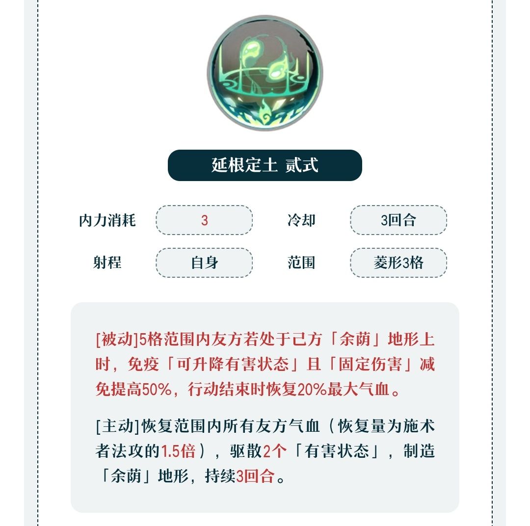 伤害一般,效果普通,但这是树皮老登唯一的范围技能(至于天序无常……中线镂空,效果看脸,不说也罢),配合天赋的收益会很不错。