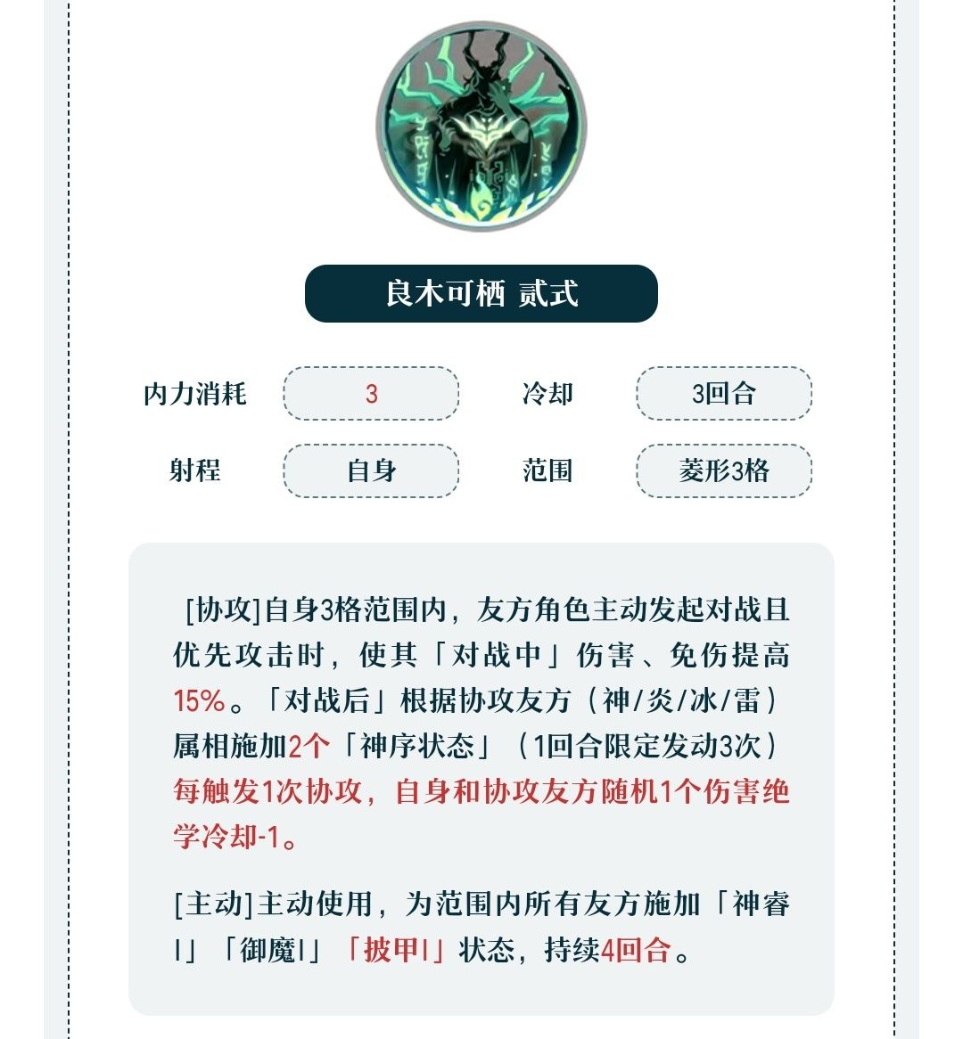 逆天协攻技,给得太多了,尤其是cd。而且每回合能发动三次,不像别的大多数协攻一回合两次,这技能别的模式不好说,但打boss本绝对必带