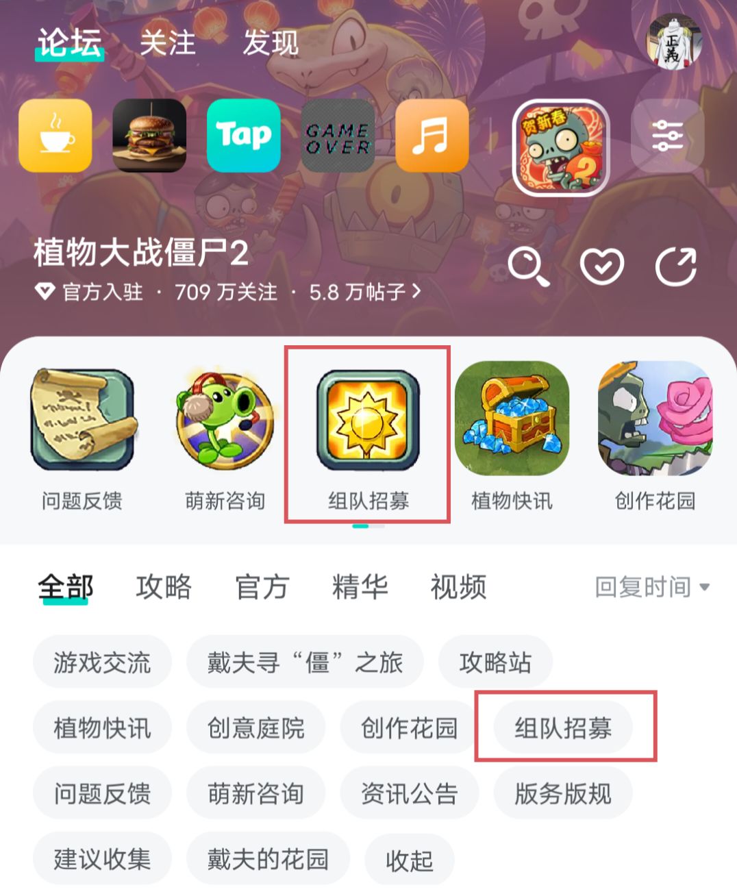 (相应的,若想要寻找组队者,也可以在【组队招募】分区中更快的寻找到)