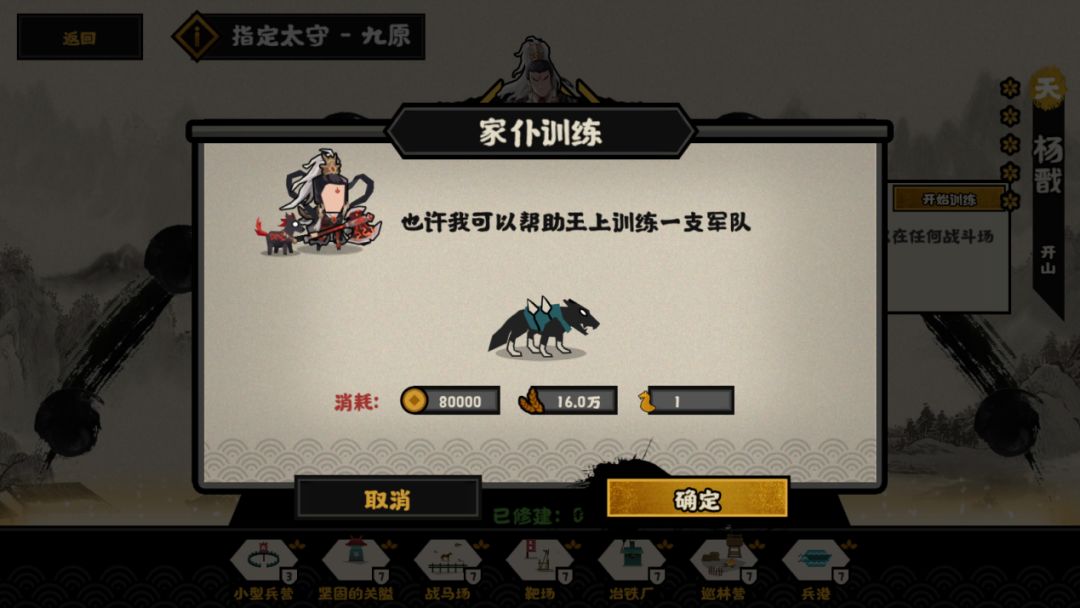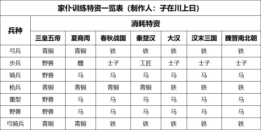 那么说了这么多,王上们一定好奇,那家仆训练要什么特资呢!实际上根据我的尝试,家仆训练的特资与家仆的兵种有很大的关联性,根据实验给出下表以供参考。