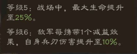 - 【王佐之才·二】兵刃与谋略增伤+4%,兵刃与谋略减伤+4%。