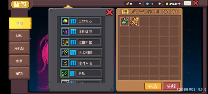 羁绊没法子,运气不好,三件双羁绊,现在还能在填两个小羁绊,准备给分裂一个扩散一个。