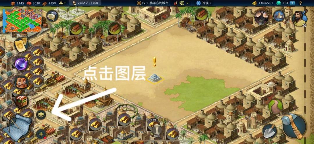 5.点击图层观察上帝视角内是否有头顶感叹号的建筑,便于观察。