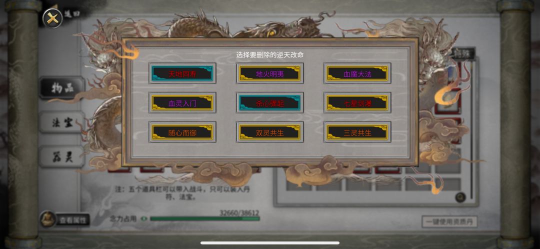 逆天改命最后两个我随便选的,可以换成保命的凝元寂灭和震天怒啸