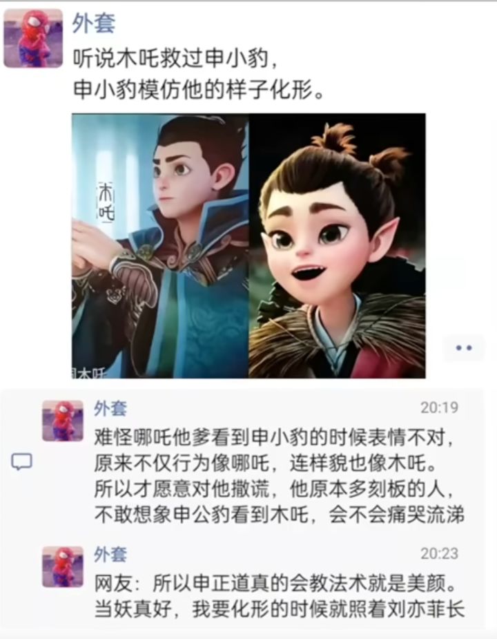 在番外剧情里,木吒曾救过申小豹,申小豹化形时模仿了木吒的样子。这一设定不仅让申小豹在样貌上与木吒相似,其行为也有几分哪吒的影子,难怪哪吒父亲见到申小豹时表情异样。
