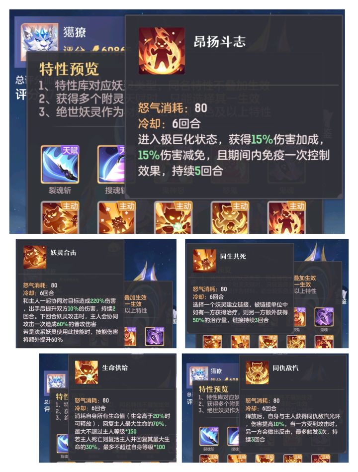1、之前有说过,不是每个金色特性都有用,对于神宫来说,很多时候都要求一回合能够击杀各自集火的主怪,所以能不能过神宫,很多时候取决于你的宝宝的输出够不够,在特性这里的选择,物理宝宝的附灵特性我推荐如下,5个特性(主动+被动)可以有15+3+3+3+2=26%的伤害加成