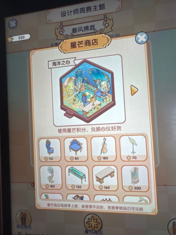 心心念念这么久 我还以为得抽奖抽出来呢 结果有人说是设计师周赛里面星芒商店可以获得 但是我这里怎么没有呢 还能在哪里获得 求大神指点