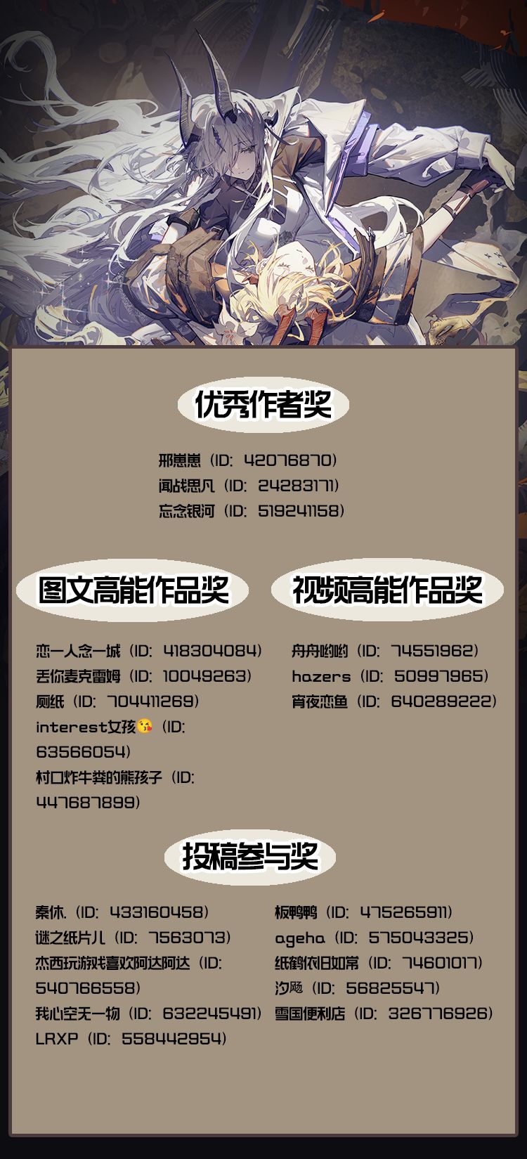 - 新版本二创:与全新SideStory「挽歌燃烧殆尽」活动相关的任意二创内容;