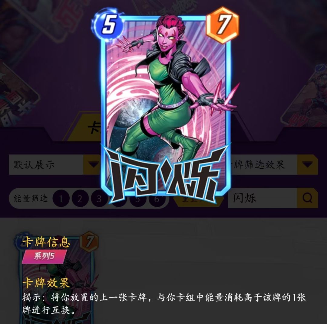 - 闪烁[5/7]揭示:将你放置的上一张卡牌,与你卡组中能量消耗高于该牌的1张牌进行互换