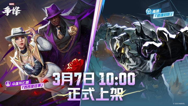 北京时间3月7日10:00,《漫威争锋》将上线斗篷与匕首「西西里往事」及毒液「遗魂旧影」主题制服!
