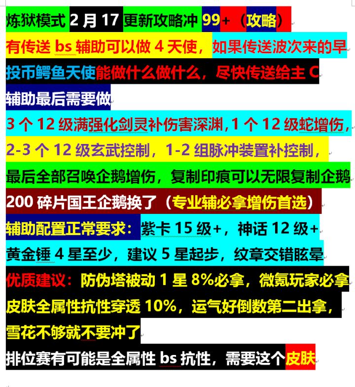 炼狱详细辅助攻略教程,欢迎大家指正不足