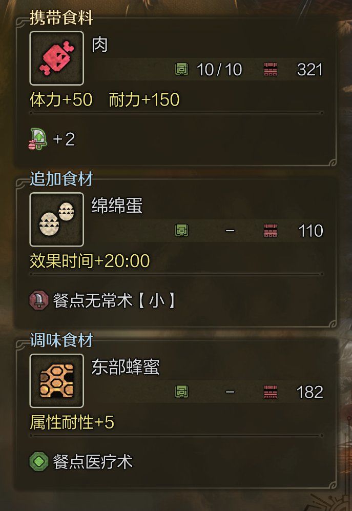 当携带食料+特产食材+蜂蜜库存三合一,掀开锅盖时那个金光灿灿的猎人笑容,就是对肝帝最好的嘉奖。