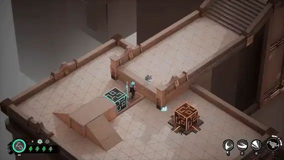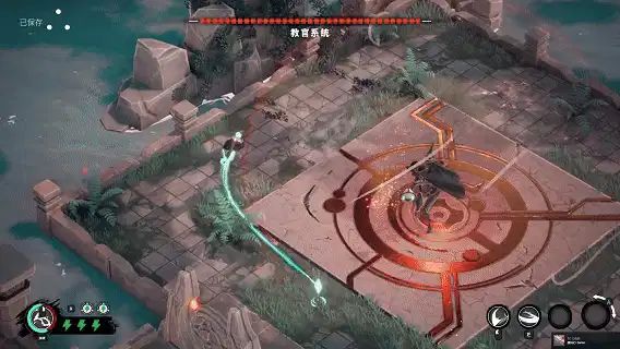 具体呈现在游戏中的是一条淡青色的线条,来记录你走过的痕迹,按下回溯键,则会消耗能量使时间变慢,敌人或是机关都将慢下来,你可以根据时间长短回到线条的任意一个位置。在你理解了这一玩法后,那么剩下的就好说了。