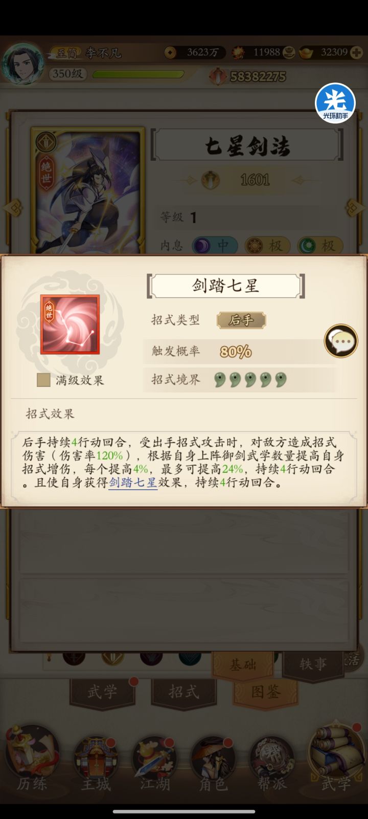 - 生态位之惑:相较同期其他流派武学(如拳法【北斗真罡拳】的爆发增幅、奇门【龙王一刺枪】的机制突破、刀法【红尘侠梦斩】的绝命护盾),剑系新招多在"微调"而无法"质变",PVE/PVP难以建立特色优势;