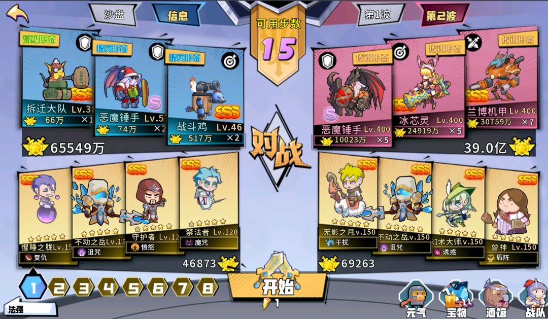 因为有锤手在,本关卡无法使用反伤,只能依赖强度硬打,但受限于对方高额双抗,正常情况下我们无法破防,但我们仔细观察可以看到对面没有溅射,还满暴击,因此有一个家族可以发挥大用了,那就是世界猫,幸运抵挡亿万暴击,破防拳有效削减双抗。