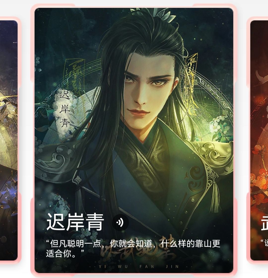 - 迟岸青:威风凛凛的大将军,在逆风局中且战且退、竭力减少伤亡。他有着自己的坚持和信念,试图在这乱世中找到属于自己的道路。与他的相遇,或许会让你看到不一样的风景。