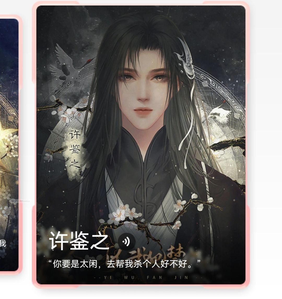 - 许鉴之:令人心动的美人政客攻,与你有着并肩作战的默契。他心怀大义,却也在这乱世中有着自己的盘算,你们之间的情感与理念的碰撞,将会擦出怎样的火花?