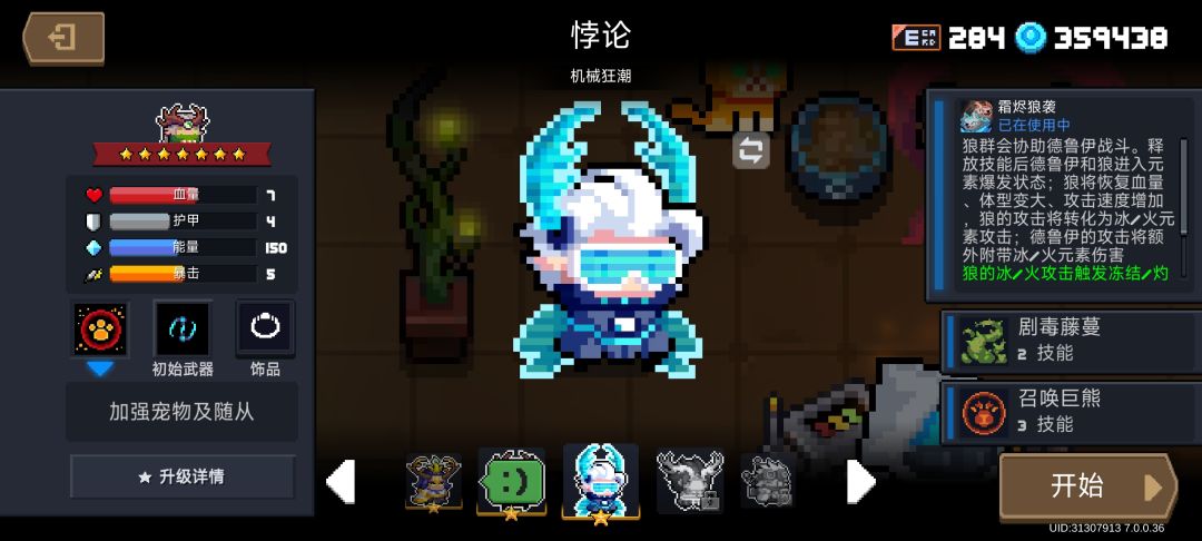狼的基础攻击力为8点(吃德鲁伊被动天赋5+3=8点),基础暴击为33%,血量34点(说实话真死不掉,毕竟八秒大招,直接回满)。