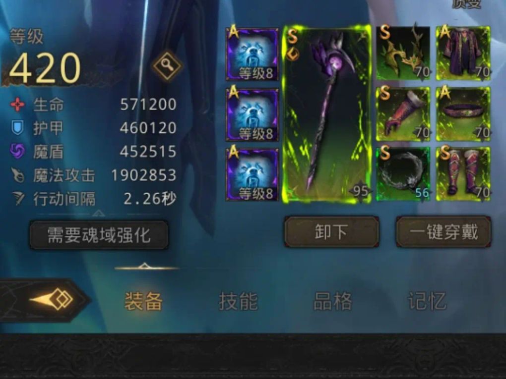 阿莎拿带减伤的堕日,魔魂全带承伤,符文伺机;