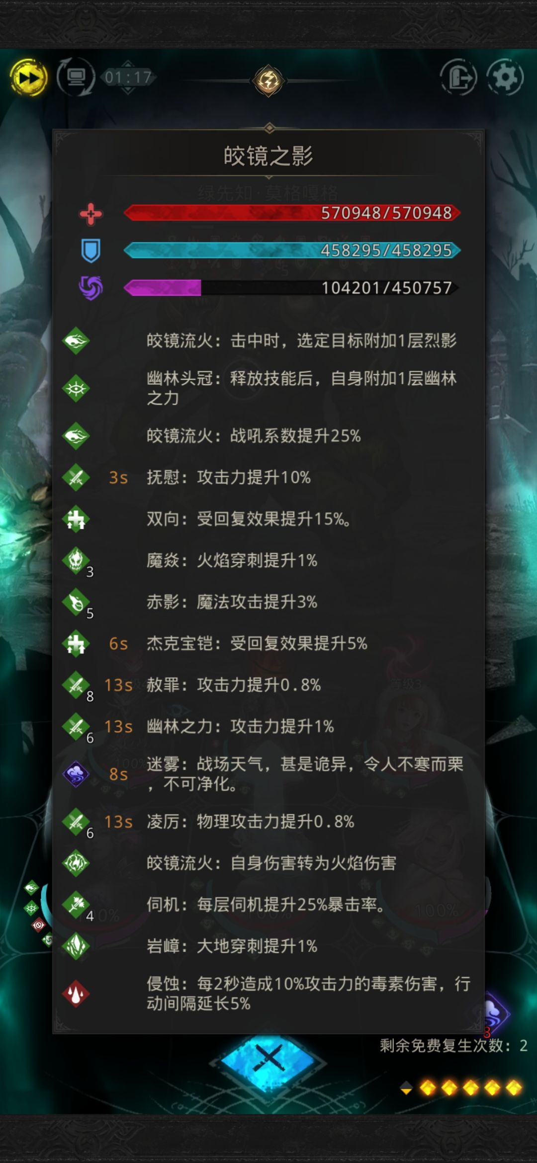 暗语开60回魔盾,另两个技能默认(因为不掉血的时候繁花不奶人,但是没有魔盾纯靠血量顶不住);