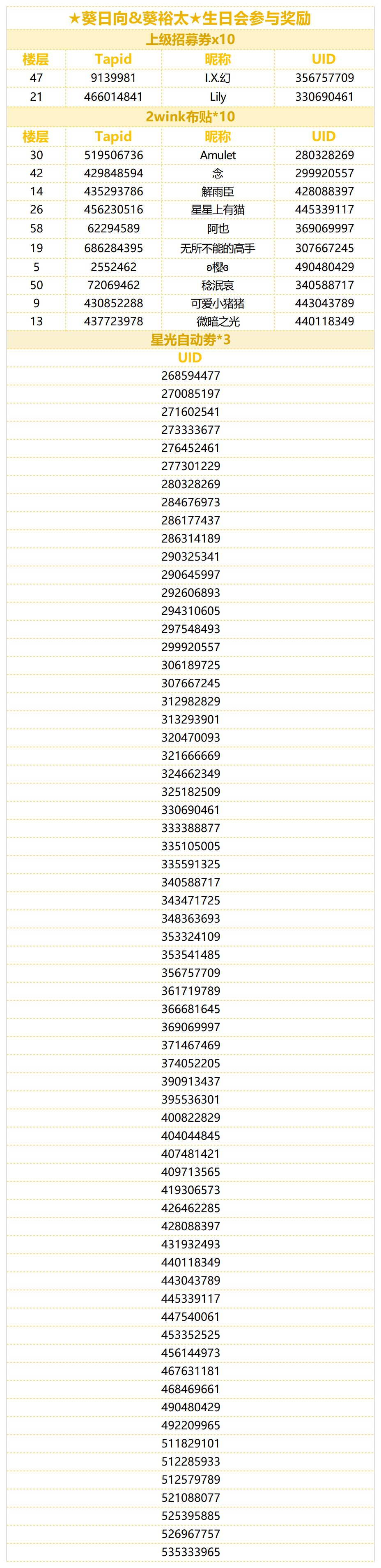 制作人们久等啦,让我们恭喜以下幸运的制作人们!