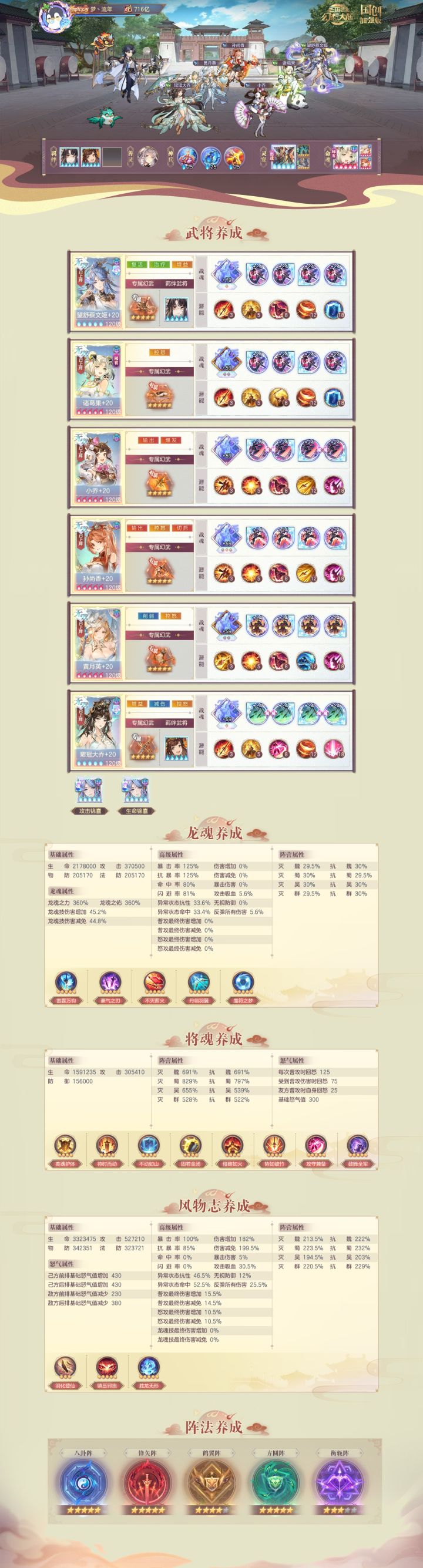 身为资深白嫖怪,阵容用的是团长的号,尚香的位置可以用王元姬,当然不建议硬拉,毕竟是个老的不能再老的命魂了。炎灵暂时没6所以上的还是画灵,看他砸金蛋补一补炎吧