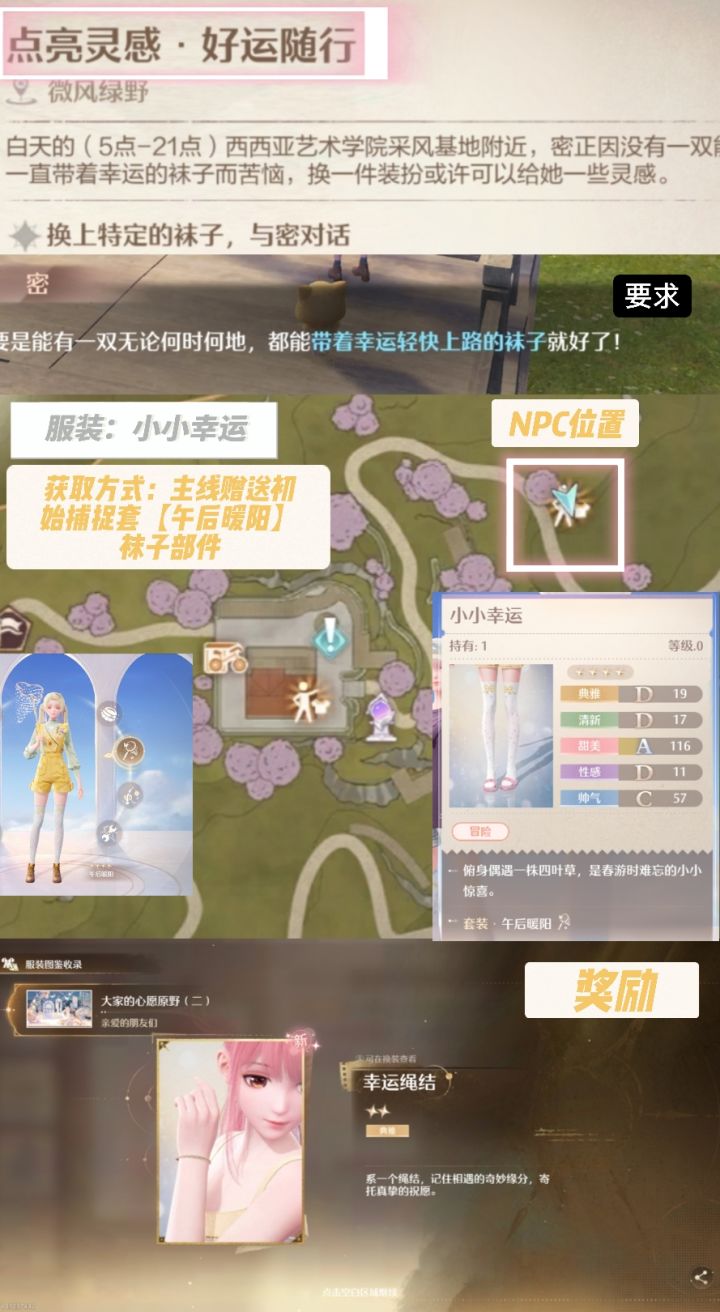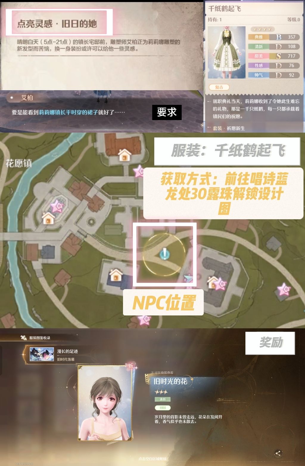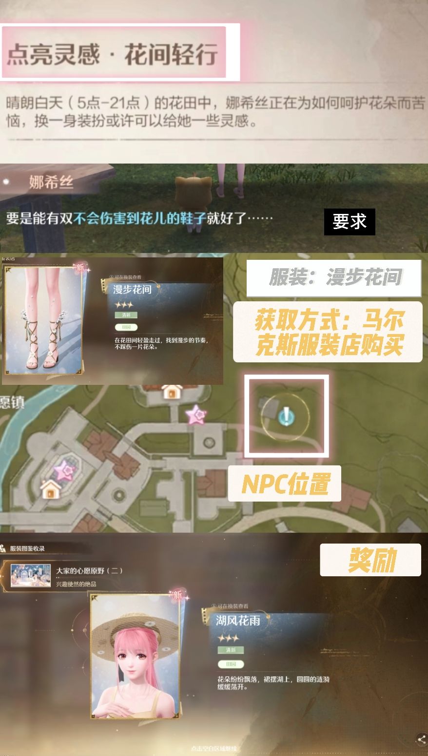 图片版攻略顺序为【任务要求→对应服装及获取方式→对应NPC/宝箱位置→任务奖励(设计图)】,且顺序与下方文字攻略顺序相对应。