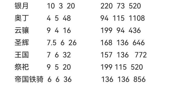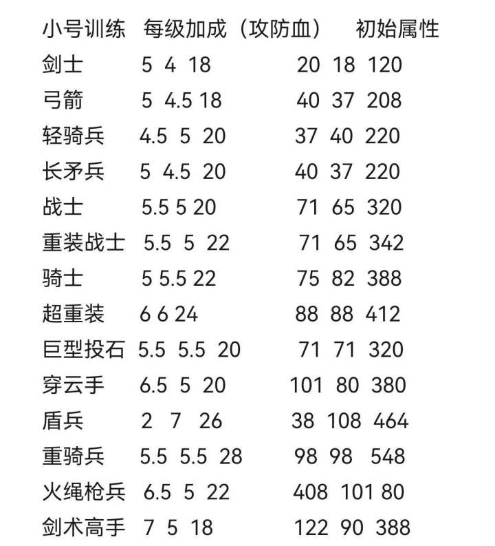 开局低级兵营只买白弓和绿战,经济主开征战,征战开了,开始买重装战士等1000军功开中级,中级开了,国度的万国金币买银月令牌,中级兵营开始买穿云和超重,开始屯8000军功等高级兵营,当然也可以不开直接军功买银月。千万别军功刷新兵营,这是大坑。还有兵种攻击方式,除了银月,其他都是打到几个,攻击伤害就分散给几个,反正伤害总和是兵种攻击力100%,银月例外,银月是打2个,全输出,伤害和是攻击的200%,所以银月是神