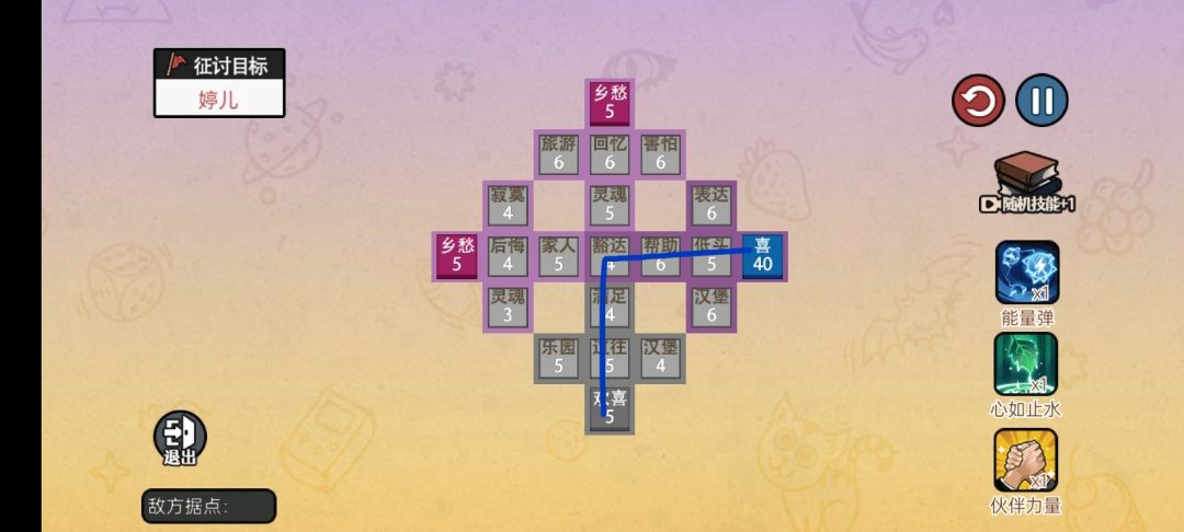 2.接下来是大妈关卡,先拖动初始格子到下方/上方的据点,占领据点后往中间靠拢(可用多个据点一起攻打)占领中间的据点,最后去征讨左边的格子