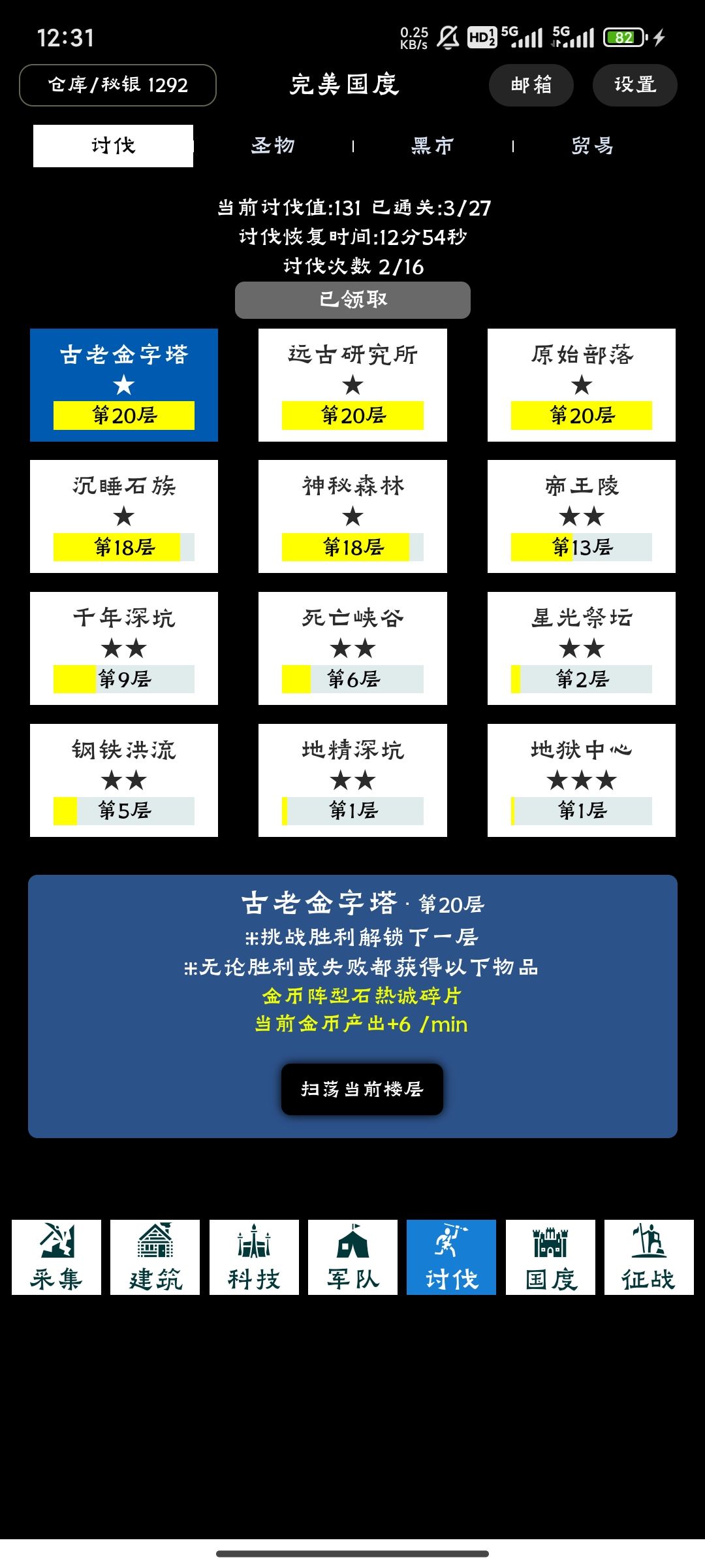点击采集与建筑等级挂钩,这里推荐只点金币