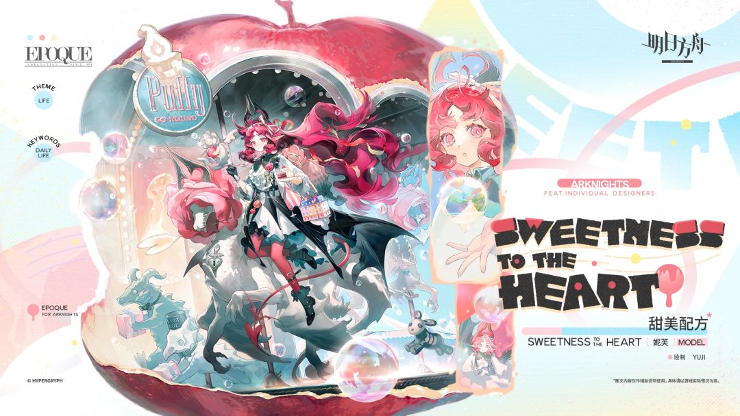 特效主体采用粉白蓝搭配水果和肥皂泡元素,这也是鹰角很常用的搭配组合