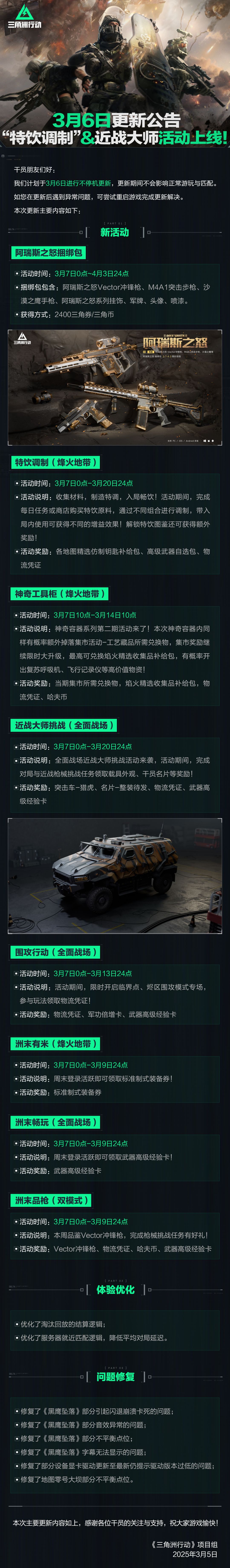 3月6日更新公告丨“特饮调制”&近战大师活动上线!