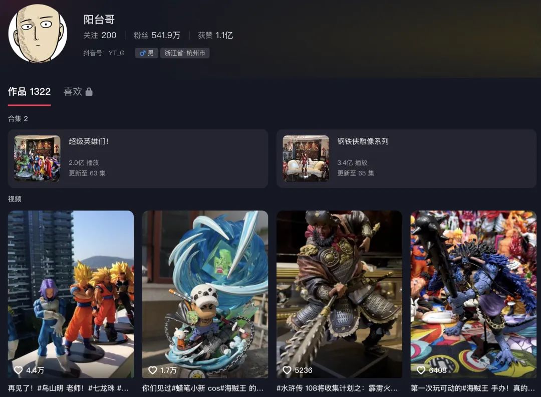 早年抖音刚崛起的时候,阳台哥还只是个普通的手办爱好者,唯一特点就是「富」。随随便便什么名贵手办,都能轻易拿出一大堆,摆在自家宽大的阳台上拍摄,蔚为壮观。