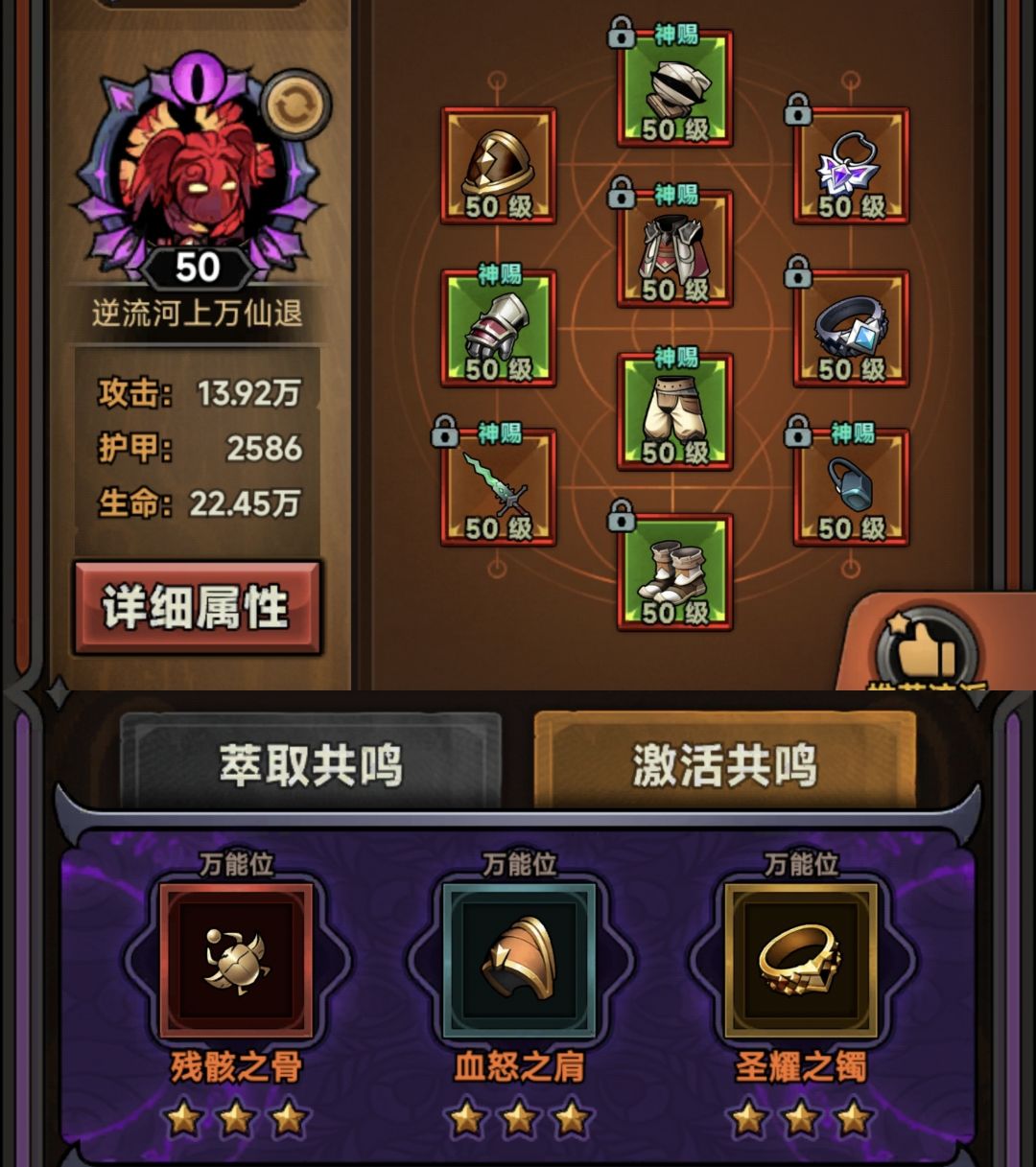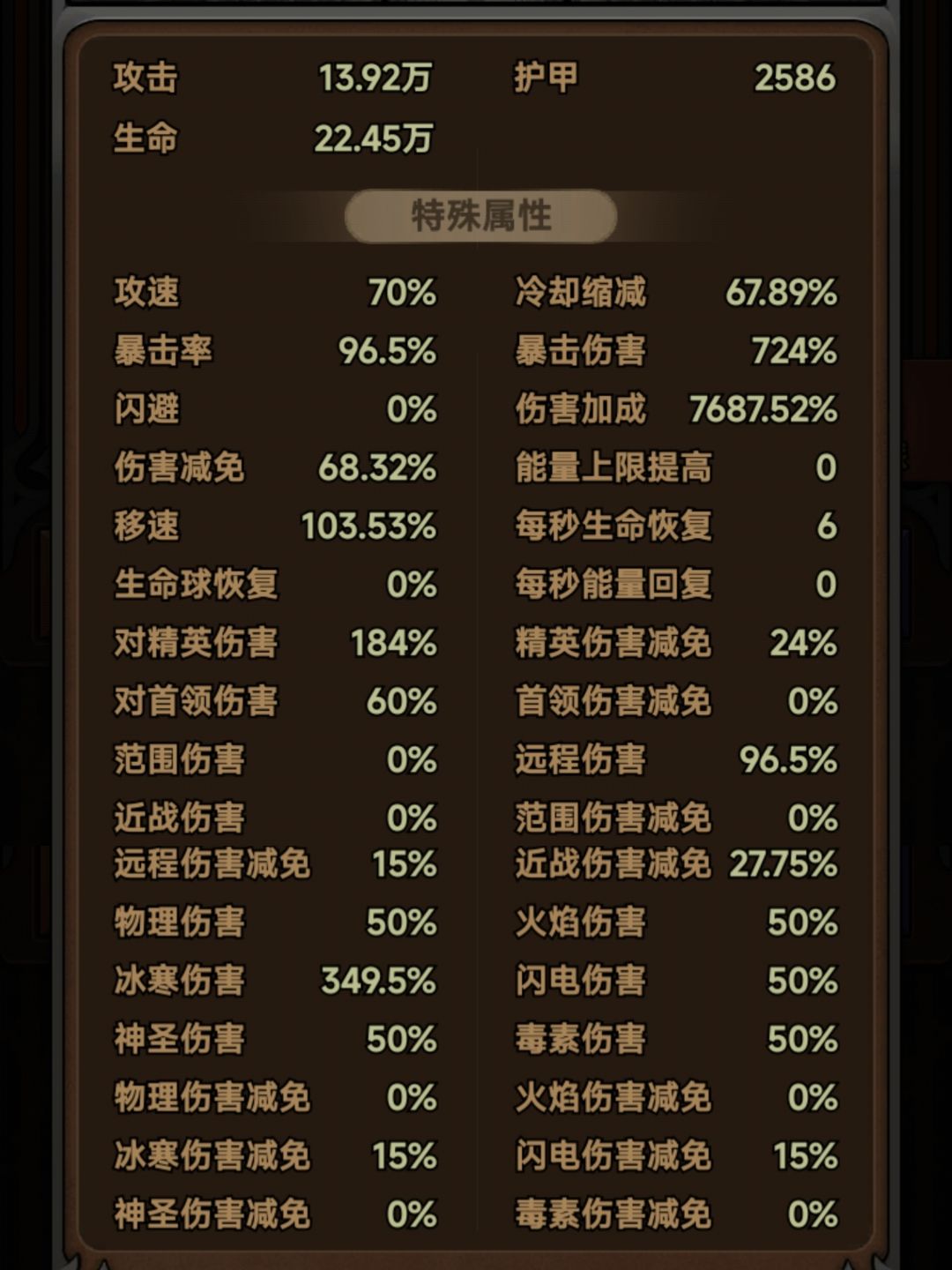毕业配置,2爆伤开局秒小怪,少一个爆伤宝石就秒不掉了,因此2爆伤3冷缩。缺伤害的可以提高爆伤宝石数量