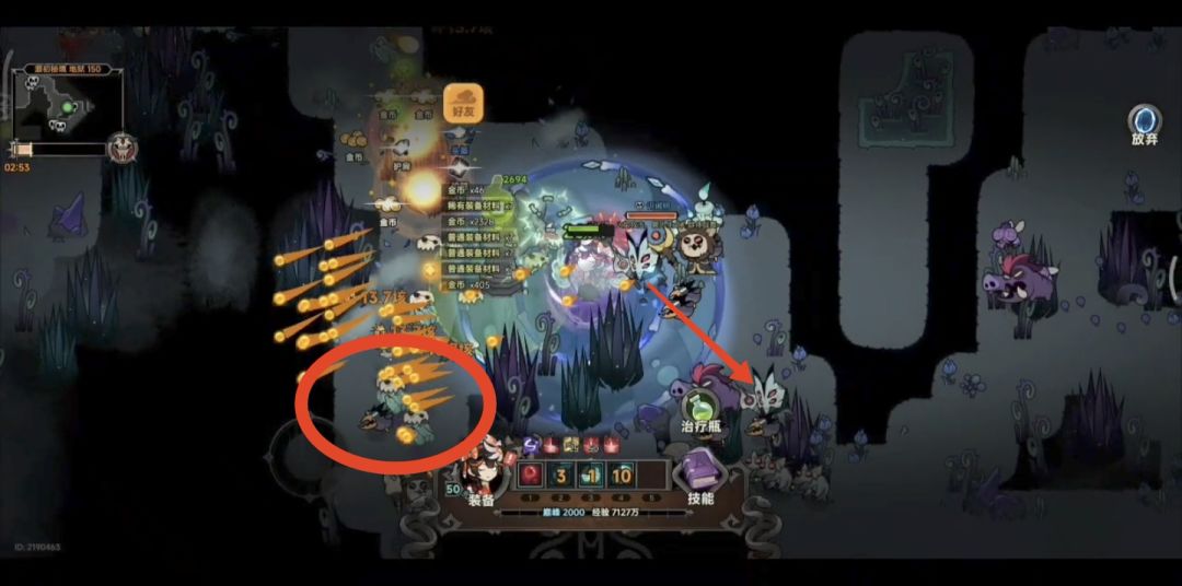 这就是为什么要提高碎骨释放频率,图中我直接往右走,但碎骨给寒霜范围外的左边小怪震死了
