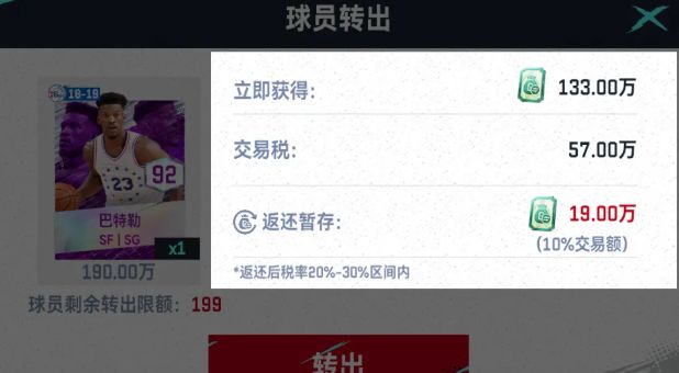 ✅ 【抵税卡】使用提示:转会福利活动期间,单次球员交易中,【抵税卡】最多可抵消20%交易税。